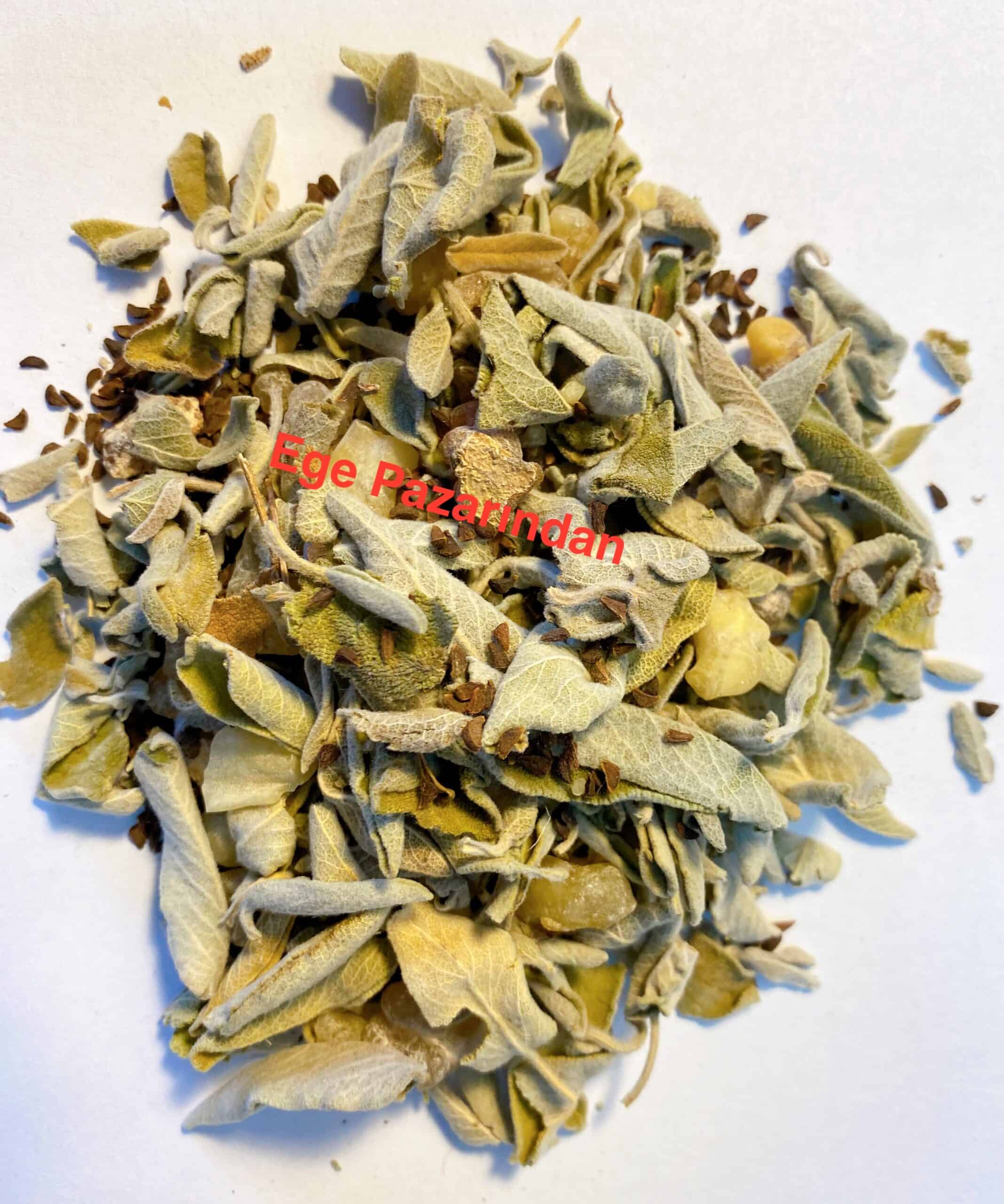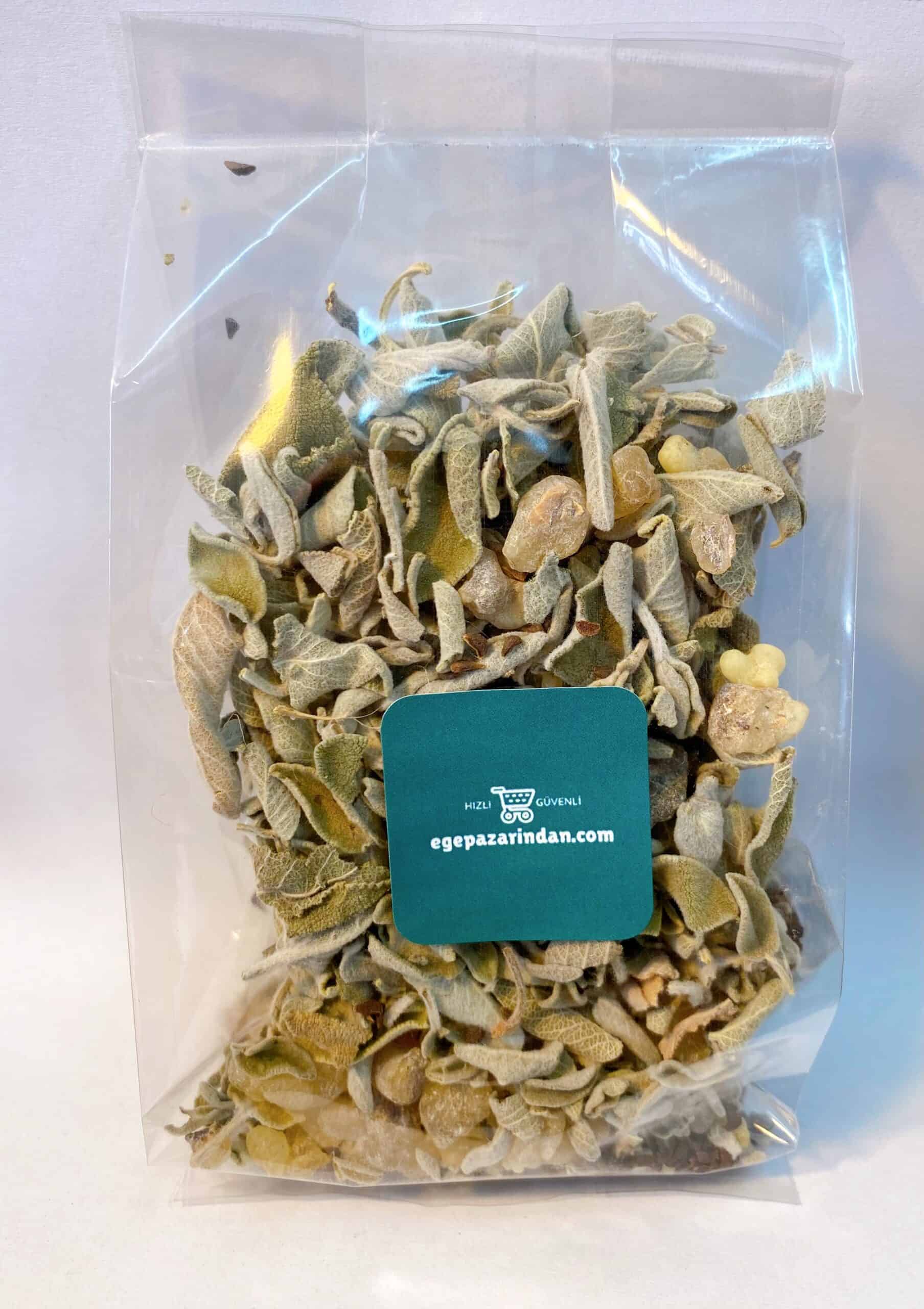 adaçayı tütsüsü, akgünlük sakızı ( taş buhur), üzerlik tohumu karışık haldedir.